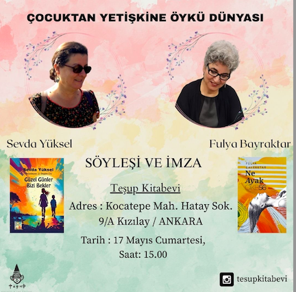 Sevda Yüksel ve Fulya Bayraktar, 17 Mayıs 2025’te Ankara Teşup Kitabevi’nde “Çocuktan Yetişkine Öykü Dünyası” üzerine bir söyleşi gerçekleştirdiler.