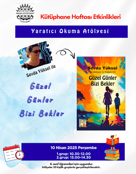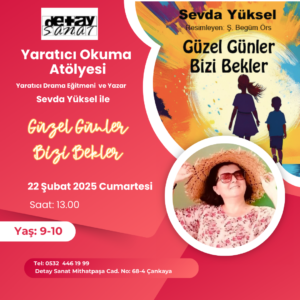 Sevda Yüksel’in kaleme aldığı “Güzel Günler Bizi Bekler” adlı kitapta çocukluk yıllarından öyküler yer alan dört ressam (İhsan Çakıcı, Mürşide İçmeli, Turan Erol, Nevzat Akoral) “Bizim düşlerimiz var” dediler. “Bizim de düşlerimiz var!” diyen 9 yaş ve üstü çocukları, yazar ve yaratıcı drama eğitmeni Sevda Yüksel’in yönetiminde yaratıcı okuma atölyemize bekliyoruz.